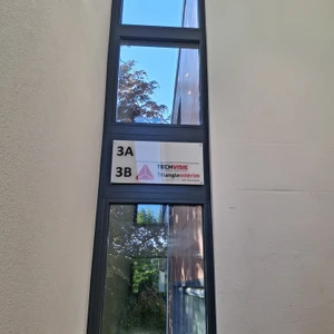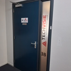 De vernieuwde signing aan de buitenzijde van het pand zorgt voor een herkenbare en uitnodigende uitstraling. Binnenin is gekozen voor lichte kleuren, moderne werkplekken en visuele elementen die de kernwaarden van Techvisie en Triangle kracht bijzetten: ambitie, innovatie en betrouwbaarheid.
